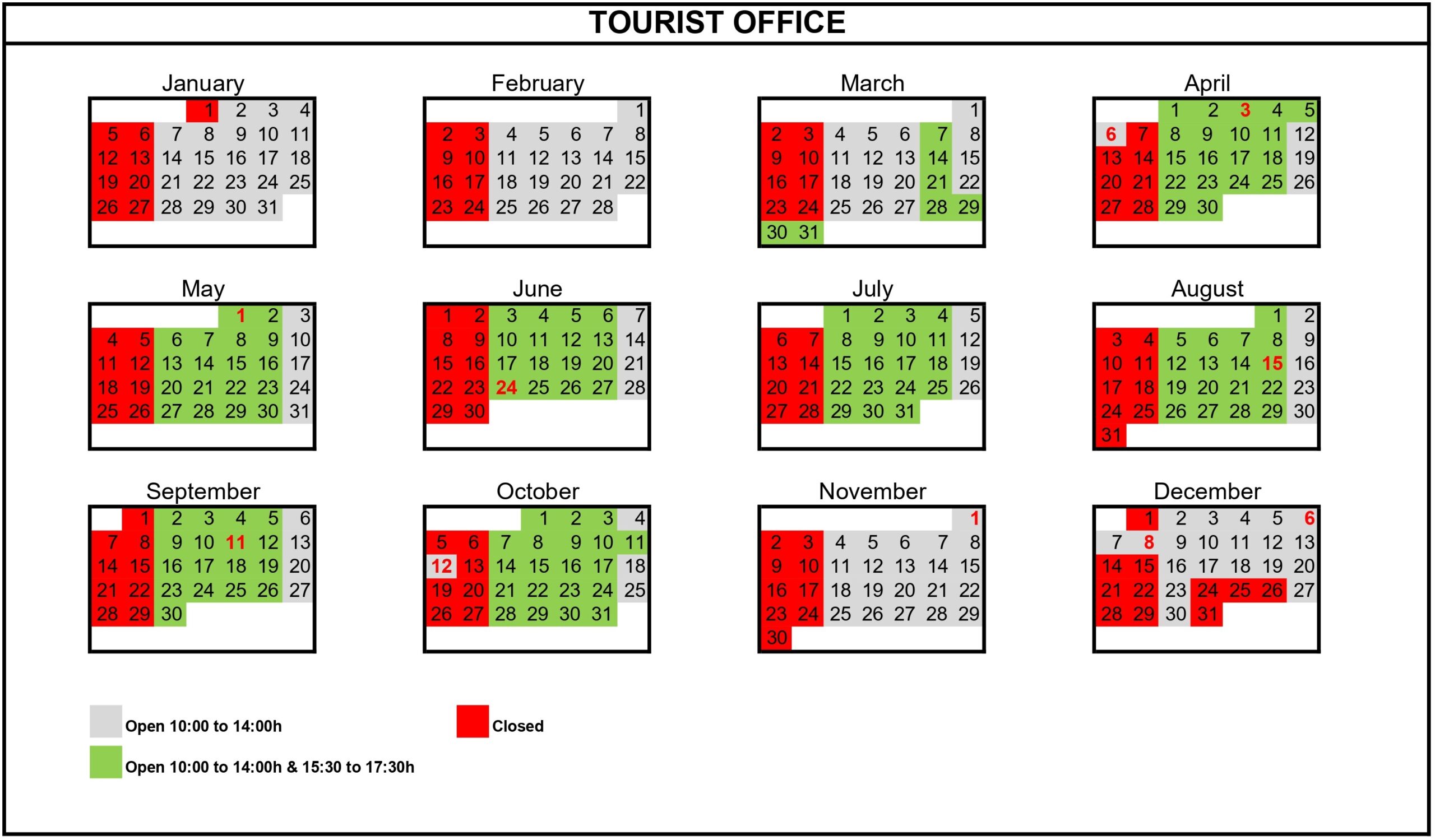 Tourist Office 2026 Opening hours